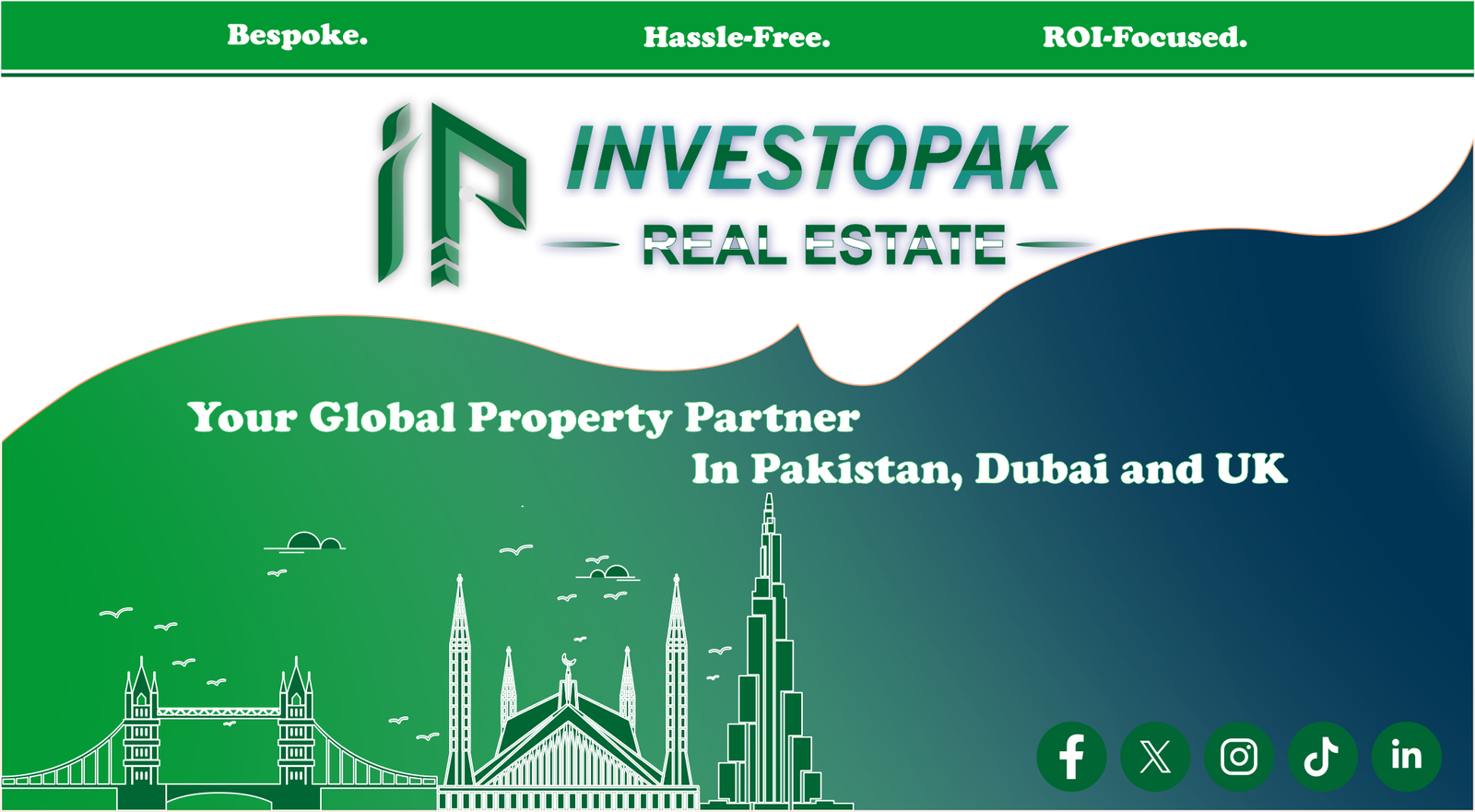 Founded in 2025, Investopak is a globally recognized real estate services firm dedicated to delivering ROI-focused, hassle-free property solutions across Pakistan, the UK, and Dubai. We specialize in end-to-end real estate transactions, offering bespoke services for buying, selling, and investing in residential and commercial properties, including plots, apartments, offices, and shops.